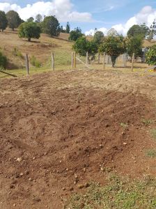 Once we got the dirt in place the fence went up, well, half of it and that’s where the project ended for 12 months, so instead of a thriving vegetable garden I had a great toilet for the dogs!
